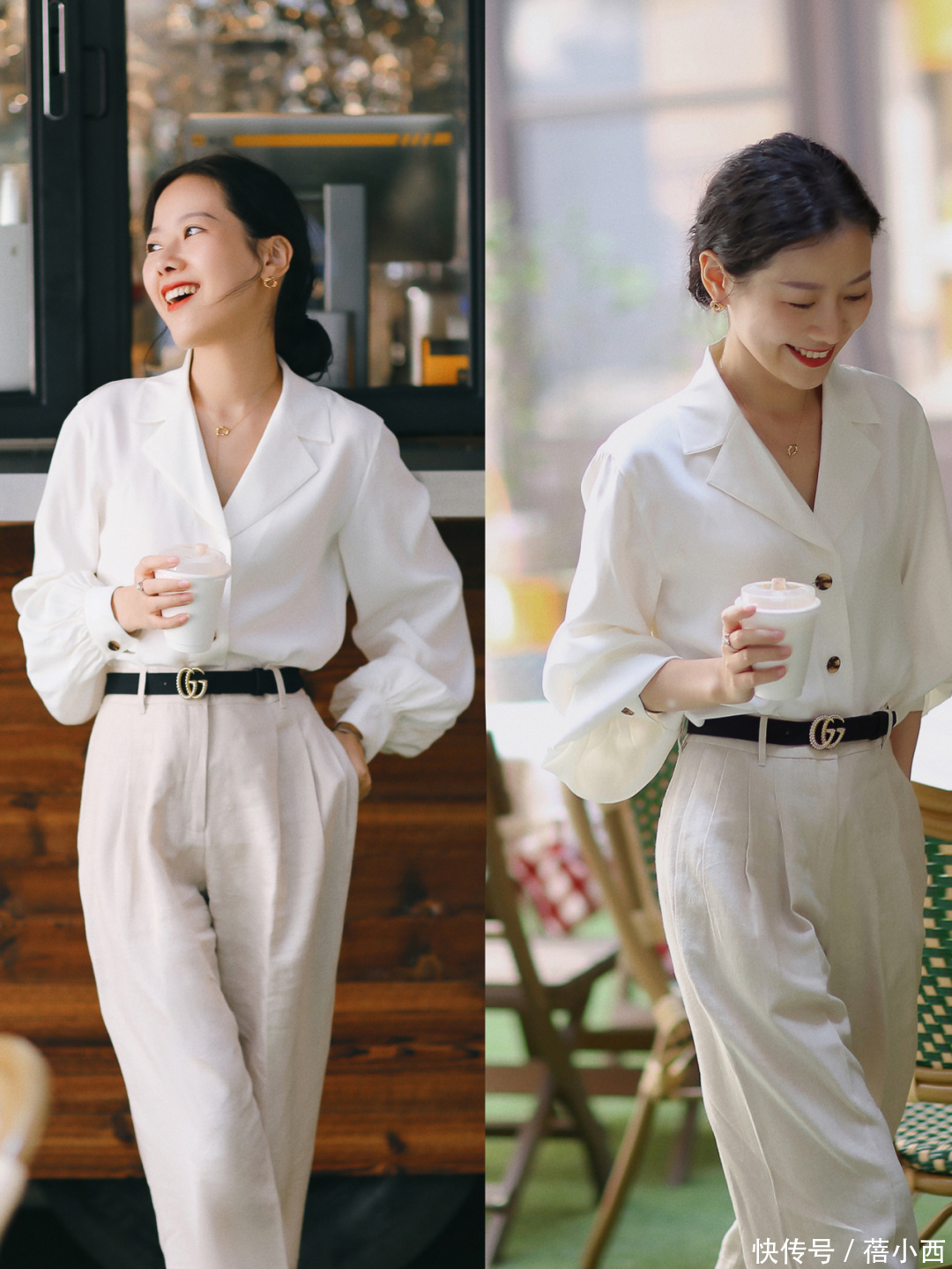 底下这种优雅的衬衫穿搭相对来说就很合乎平日,而况白色衬衫的造型看上去简略又大气,穿在身上充分的抒发出了女性的优雅气质。